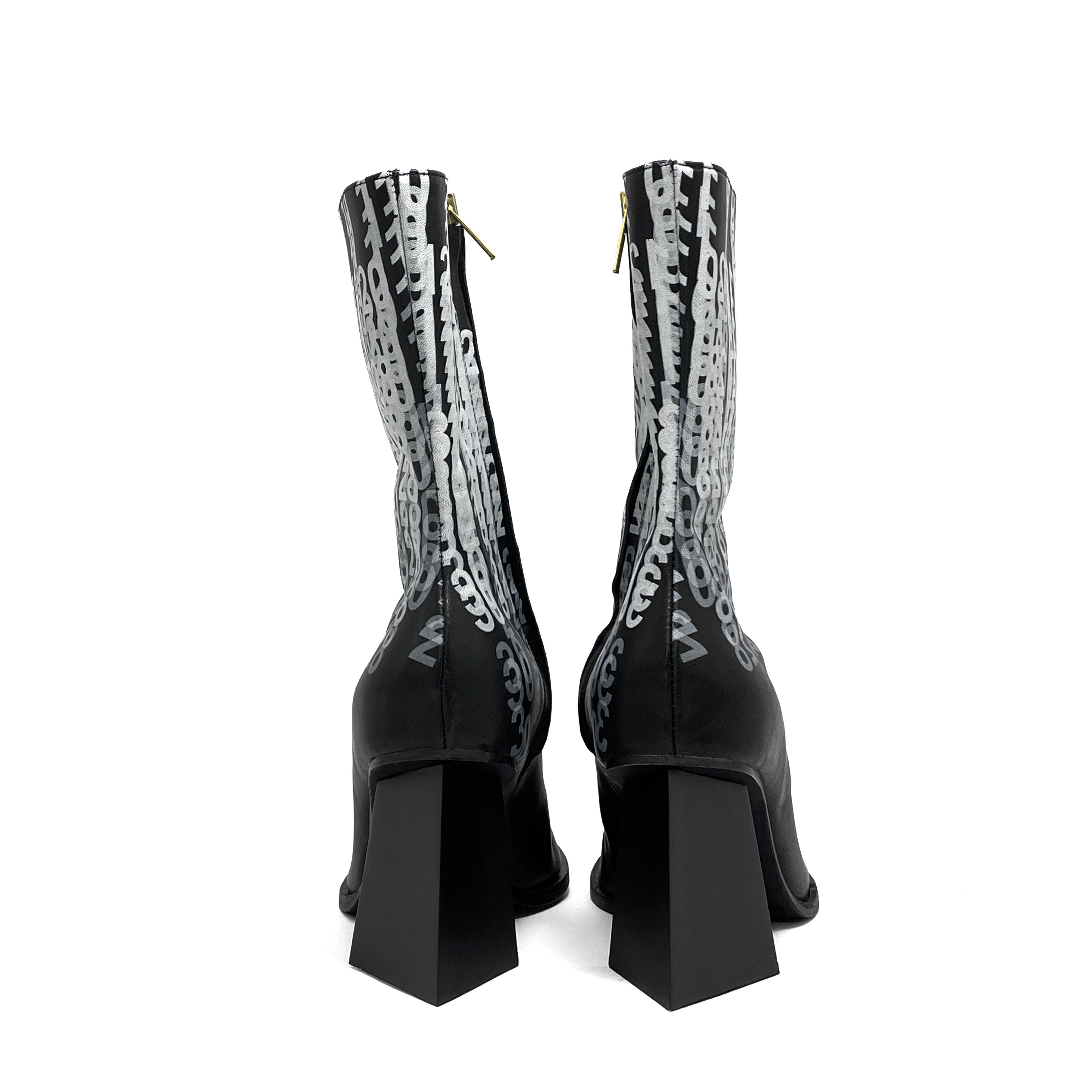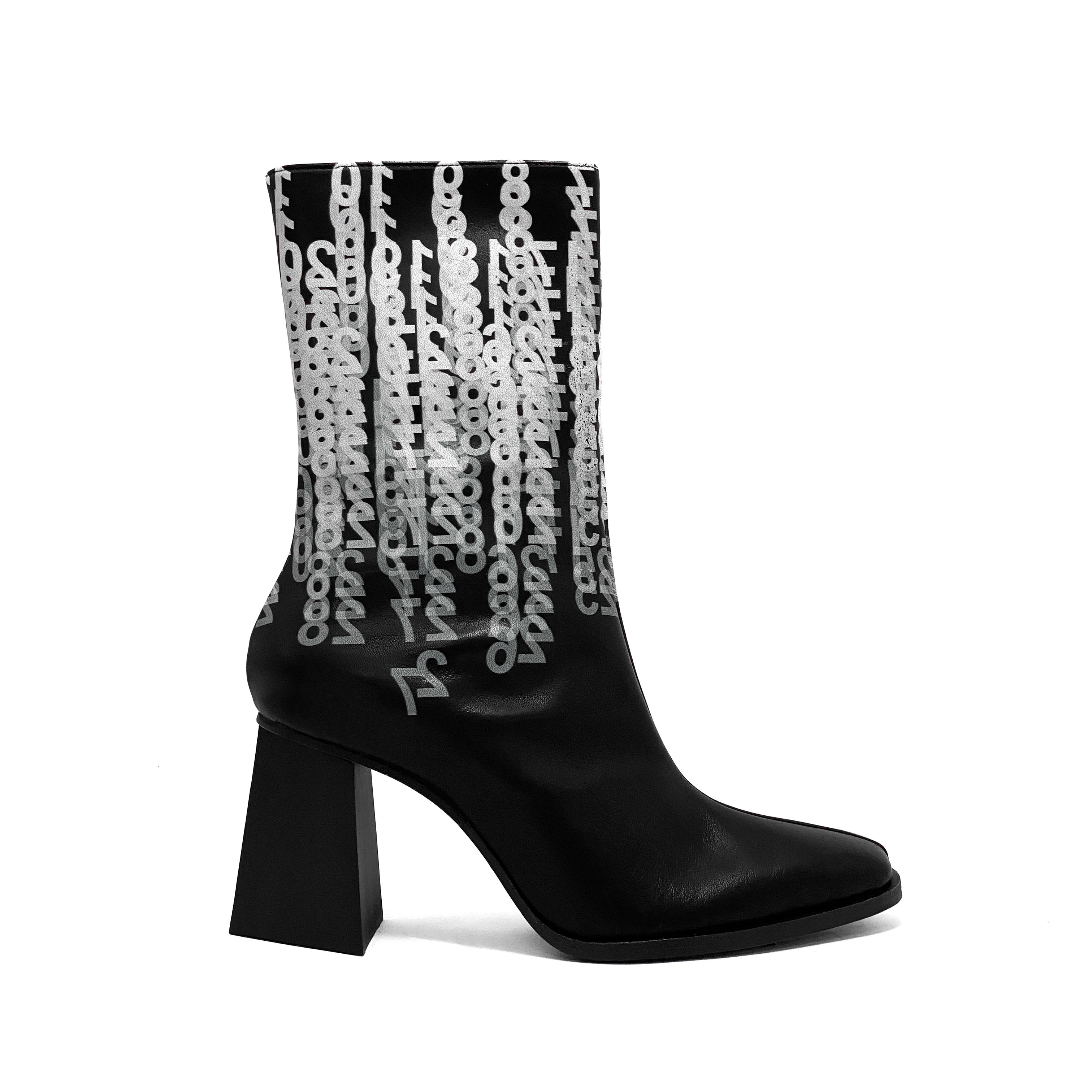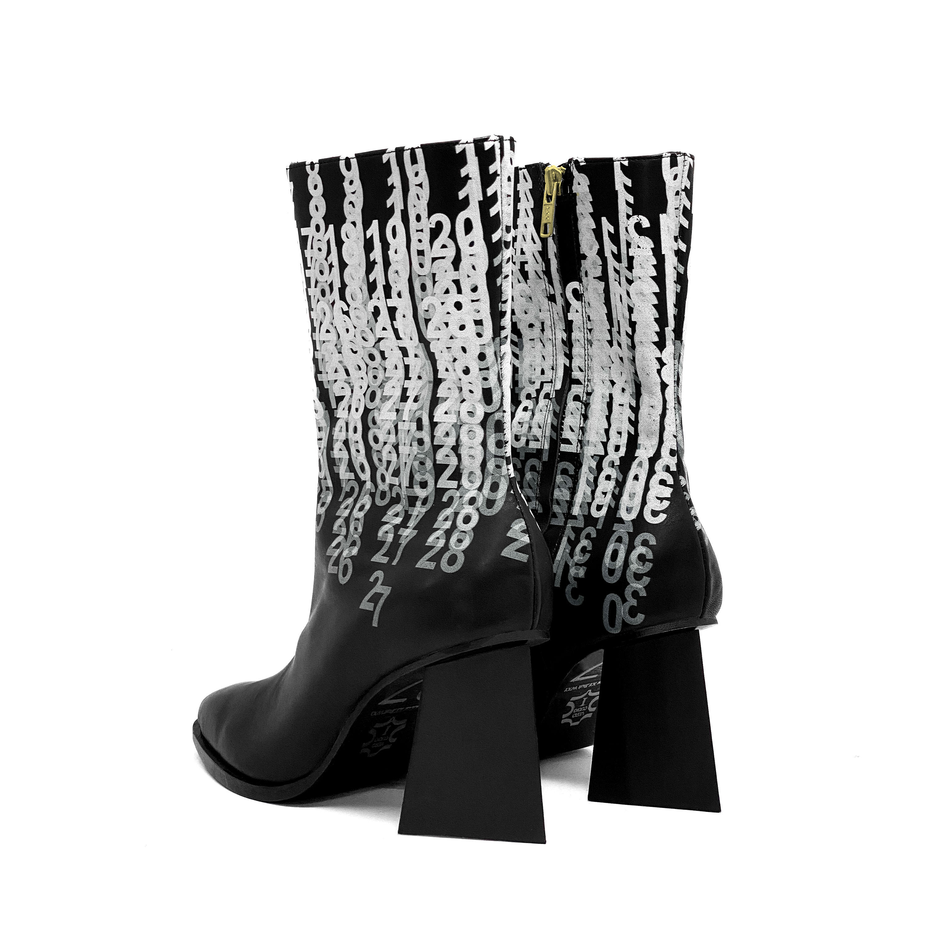 + Black gibberish number printing Leather Upper