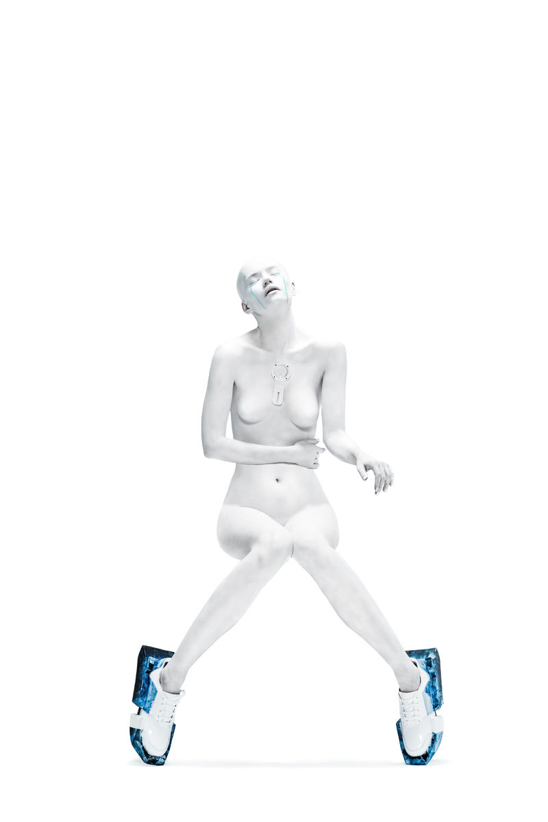 + White leather aniline leather with computer printing upper